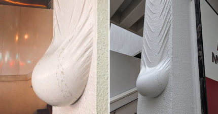 大樓牆壁「突然大肚子」 他忍不住伸手一摸出乎預料
