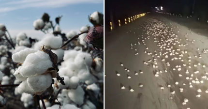 晚上開車納悶「怎麼滿地都棉花?」 駕駛下車一看嚇瘋定格:撒了3公里
