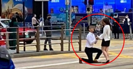 情侶馬路中央「下跪求婚」 女方反應曝光!照片瘋傳網罵翻:浪漫在哪?