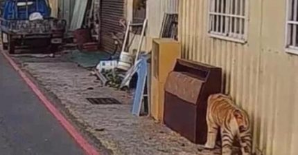 台中鐵皮屋旁「老虎出沒覓食」 騎士繞回去一看傻眼了