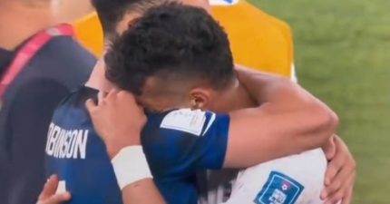 運動家精神!伊朗淘汰球員痛哭 美國後衛「相擁安慰」畫面爆紅