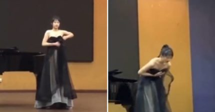 女大生表演「禮服突下滑」 邊唱邊喬女乃…老師尬爆