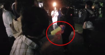 影/奥运圣火传一半 欧巴桑突「拔水枪狂喷」想灭圣火
