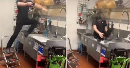 影/洗碗槽「當浴缸跳水」玩深水炸彈!速食店員被批嗆:提離職了