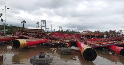 丹娜絲重創台南古蹟 「牌樓全塌」神尊泡水中