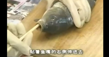 她把兩根筷子插進魚嘴「轉兩圈一拔出來」,全部內臟都出來了!