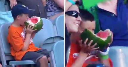 球賽鏡頭拍到了這個小男生全世界才發現吃西瓜的方式都錯了…