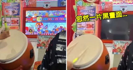 影/神人玩《太鼓達人》忽然螢幕一黑 他淡定繼續玩…最後竟打出903連擊!