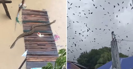 颱風侵襲前「漫天蝙蝠亂舞」 風災後驚見「6公尺巨蟒」
