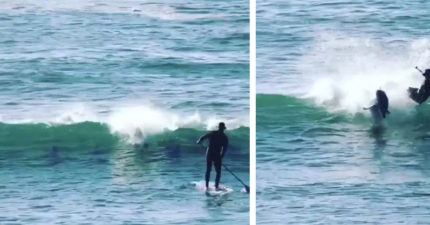 男子海上玩衝浪 慘被屁孩海豚「噢耶~」擊飛:下水一起玩囉♥