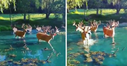 湖邊驚見「山神」集體過河 超仙畫面根本是現實世界中的《魔法公主》!