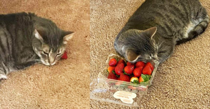 貓咪突然「愛上草莓」!「不想吃掉」只想每天撒嬌抱著睡❤