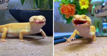 超快樂「豹紋壁虎」燦笑逛大街 「眨單眼耍Q」讓人超想養❤
