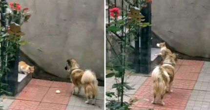 影/流浪貓沒東西吃!暖心汪把「自己的肉包讓給牠」畫面超溫馨