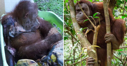 猩猩遭電擊「失去雙臂」 被人類救活「靠雙腿」成為明星榜樣!