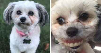 屁孩狗趁主人睡覺「偷走假牙」 笑容超詭異「側臉看」更獵奇!