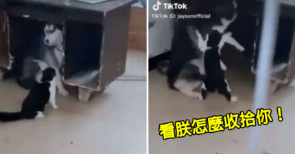 影/哈士奇v.s小貓「搶食戰」 大毛孩「超丟臉下場」讓網笑翻!