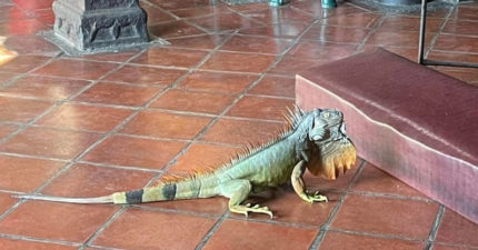 屏東廟裡驚見綠鬣蜥「虔誠拜拜30分鐘」 下場卻不太好