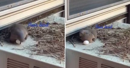 影/鳥媽媽在冷氣機「隨興築巢顧蛋」 他緊張錄影…最後倒抽一口氣