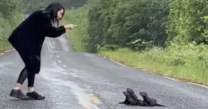 路上驚見「3塊會動的黏土」在中間?她下車靠近一看感動得流下眼淚