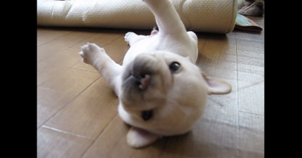 這隻小法鬥怎麼樣都翻不起身的超萌模樣就是你不開心的解藥!
