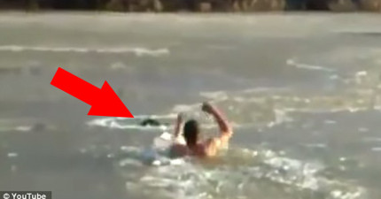 這名年輕男子裸身跳進結冰的池塘中並用雙手搗碎冰塊前進,他這麼做的原因讓我太感動了!