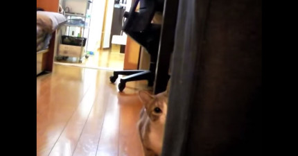 這個人只是在拍攝家裡的貓咪,沒想到一轉眼就變成了貓咪的獵物。