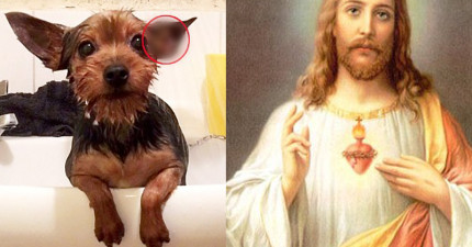 當她在幫狗狗洗澡的時候,意外發現耶穌竟然在狗狗耳朵中顯靈!