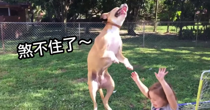 狗狗在半空中才發現自己闖禍要撞上小女孩的「經典表情」,你一定也有過…