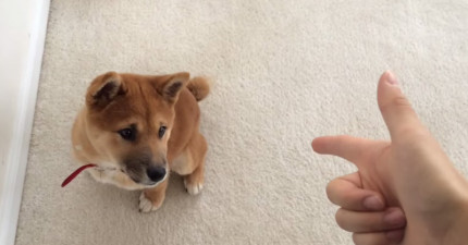 這隻3個月大的小柴犬看太多警匪片了,所以當你拿槍指他,他就會…