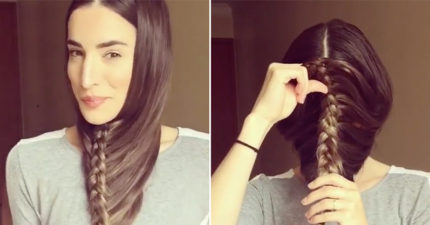 女子搞笑似的把「辮子綁在下巴下」,一把頭髮拉起來女生都跪拜了!