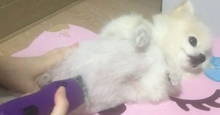 正妹馬麻幫這隻博美剃毛時他樂在其中「要嚕哪裡都可以」,剃到GG毛時他的表情更是讓人笑歪了!