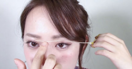 這個女生「把一條細線綁在眼皮上」,15分鐘後當她拿下細線時很多整形醫師業績都要慘跌了…