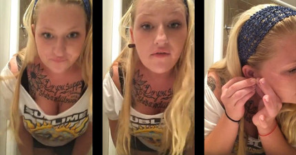 她正在示範「如何將耳洞撐得更大」,結果耳環掉在地上後她才發現悲劇了…
