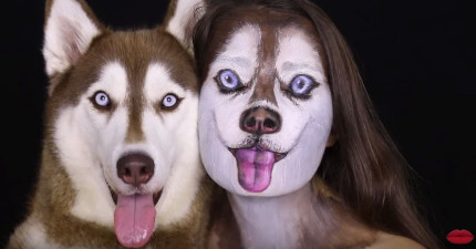 因為她太愛她的哈士奇狗狗了,因此她就直接變成了他!