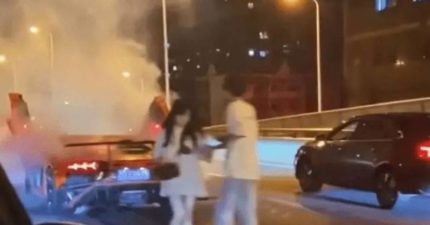 藍寶堅尼燒成火球!土豪車主超淡定安慰女友:寶貝沒事