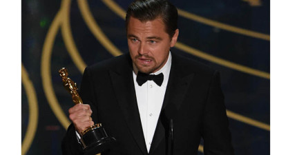 眼尖觀眾發現李奧納多竟然趁領奧斯卡獎時在台上暗比「F*ck You!」!