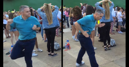 網友本來要去聽樂團演唱會,但目光卻都被這位狂野的「舞棍老爸」給奪去了!