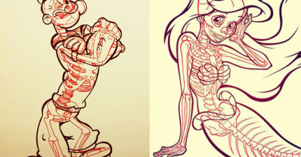 這位藝術家用畫筆幫16個知名的動漫卡通人物「照X光」!