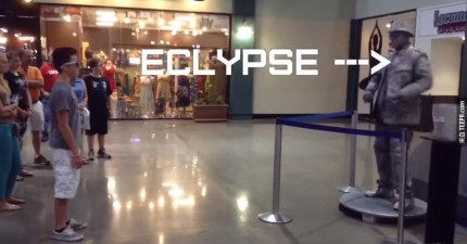 這個男生在百貨公司裡跟一個雕像舞鬥。這真的精采到過分!