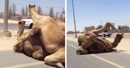 2駱駝公路上「光天化日打野砲」造成嚴重大塞車!0:11 超爽低沉呻吟PK喇叭聲!(影片)