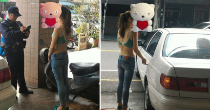夫婦買東西時,轉頭看到「內衣辣妹」開他們車門坐了進去…