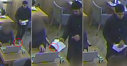 他假裝搭訕女子在桌上「蓋白紙」秒偷走手機,「不到7秒」停止把手機放桌上!(影片)