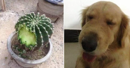 狗狗「咬仙人掌一口」慘腫成豬頭,主人笑到超內疚:「你活該!」