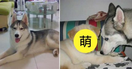 哈士奇懷孕「不知道爸爸是誰」,2個月後生出「超萌金毛混血小狗」眼睛像媽媽!