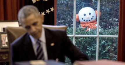 白宮驚傳「詭異雪人偷窺歐巴馬」毛到不行,歐巴馬「終於發現」反應證明了他不應該卸任!