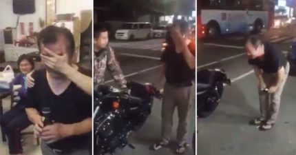 兄弟不捨爸爸辛苦密謀送「53萬哈雷機車」圓夢,「硬漢老爸秒落淚」惹哭網友!(影片)