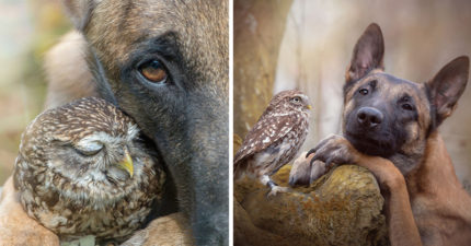 真正的愛是不分種族!「狗狗+貓頭鷹」超萌互動暖照:朋友是一輩子的喔