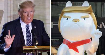 中國慶祝2018狗年設置「巨大白狗雕像」!「招牌金髮+經典手勢」看起來好眼熟…