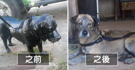 狗狗被「全身倒滿瀝青」動彈不得快死掉,出動3人「洗全身浴」模樣超萌等新家!
